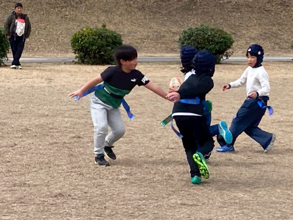 そんななか、子供たちは寒さに関係なく元気にラグビーしました😀✨️ボールを持ってたくさん走ったり、タグをとったりと、動いていると心も身体も熱くなる🔥