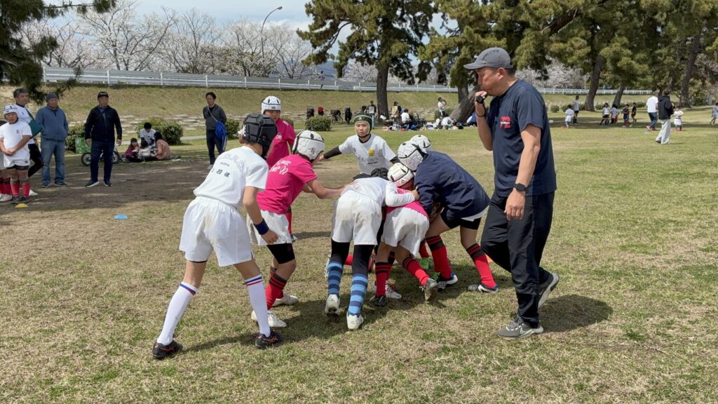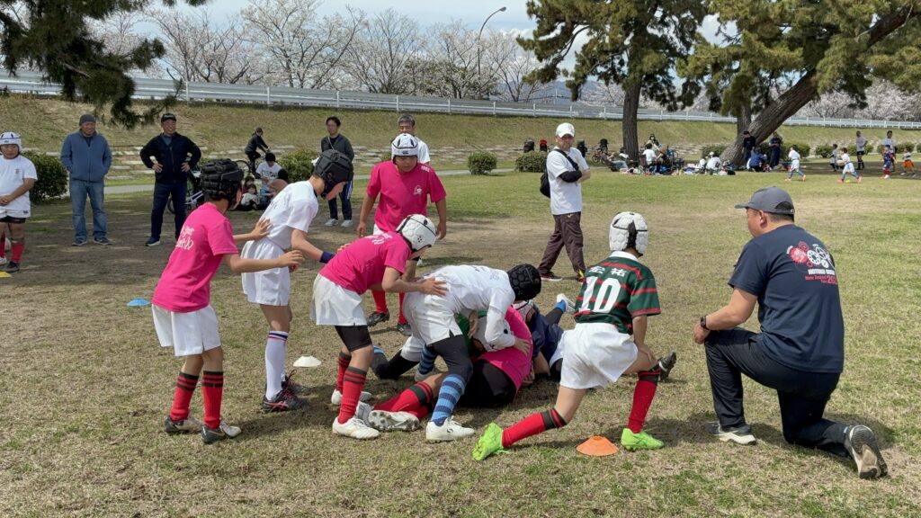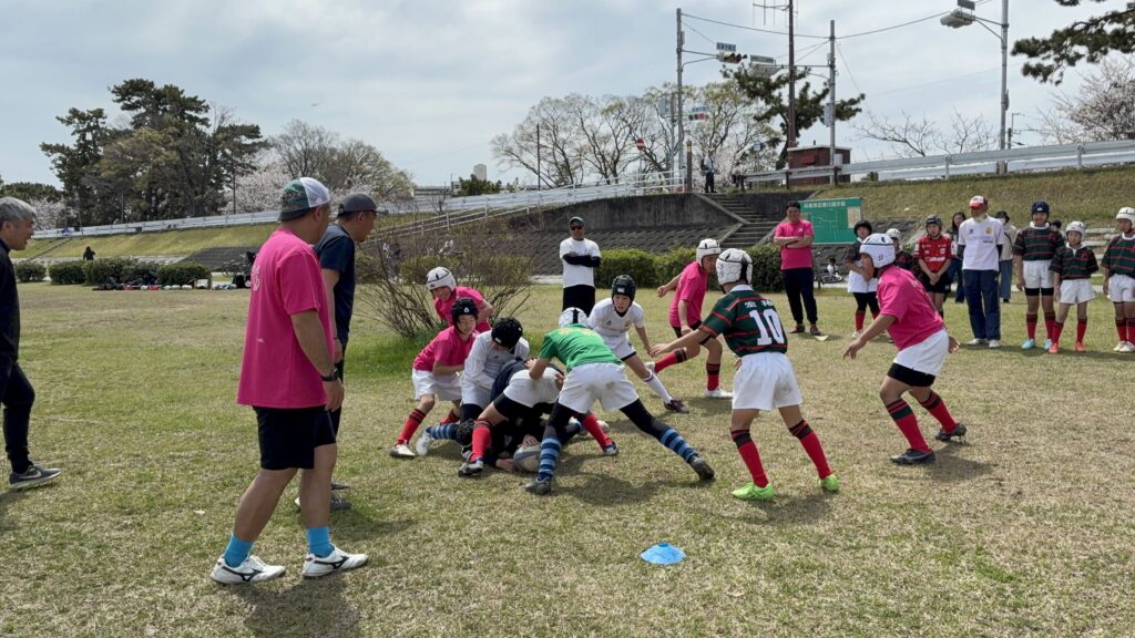 大人顔負けの、実践を意識したより本格的で熱いラグビー練習が展開されていました。