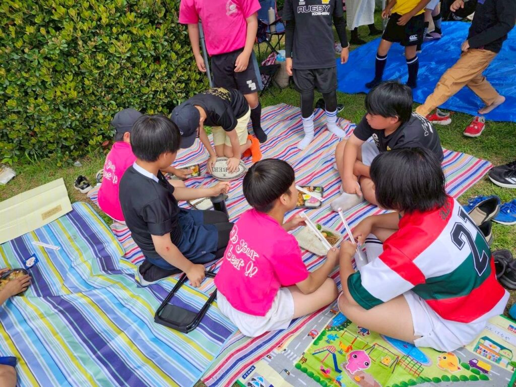 練習の合間には、みんなでお弁当を囲んでリラックス。試合での緊張感から解放され、仲間と笑い合って過ごすこの時間は、チームの絆を深める大切なひとときです。