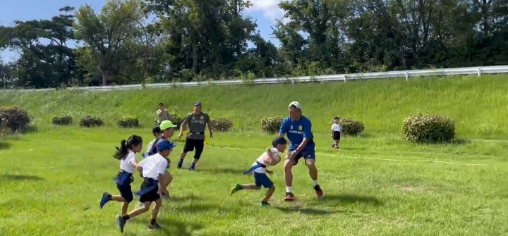 コーチ達とのタグラグビーにも力が入ります。みんながんばれ!コーチ達もがんばれ!💪