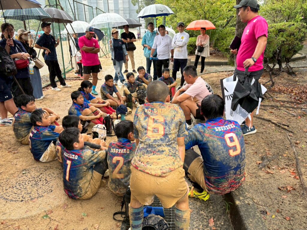 練習のあとは試合❗️雨が降るなか、みんなで頑張りました👍️相手チームの方々も雨のなかお疲れさまでした🙇
